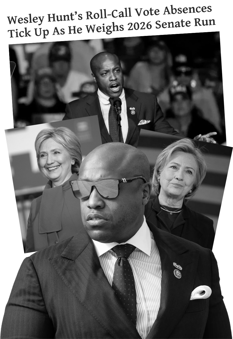 Wesley Hunt has one of the worst attendance records in Congress — over 18 percent of all votes. Hunt missed 27 percent of all votes in 2025 alone.